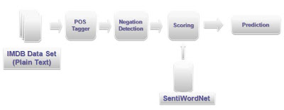 How to classify test with a sentiment lexicon? A simple strategy is to scan a document counting the words found in the lexicon, and make a classification decision based on the total counts for positive and negative words found. SentiWordNet contains words part-of-speech information, so it makes sense to perform some pre-processing on input text: we'll use NLTK's part-of-speech tagger to find out what part-of-speech to query in the lexicon for each word found.